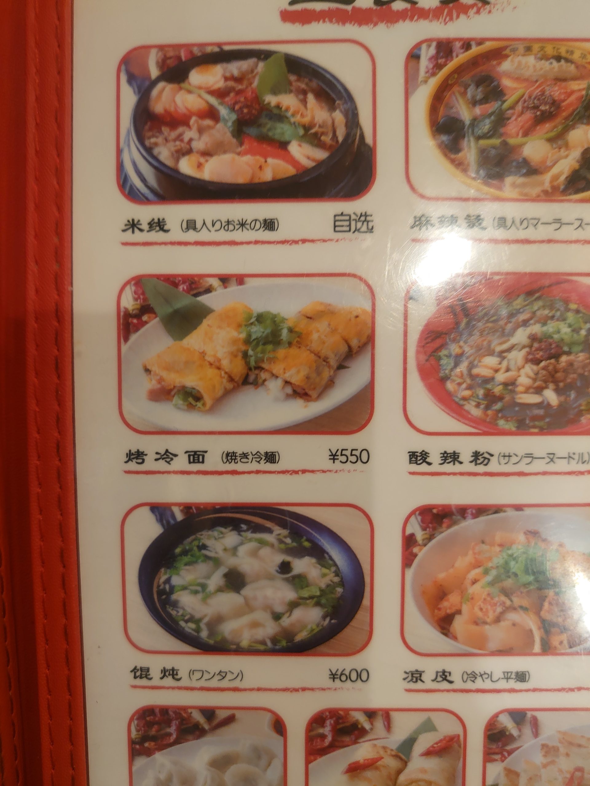 焼き冷麺という食事がメニュー表にのっています。