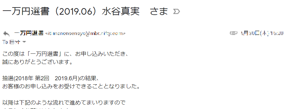 そのため、当選しなかったという思いもなく、すっかり忘れていました。